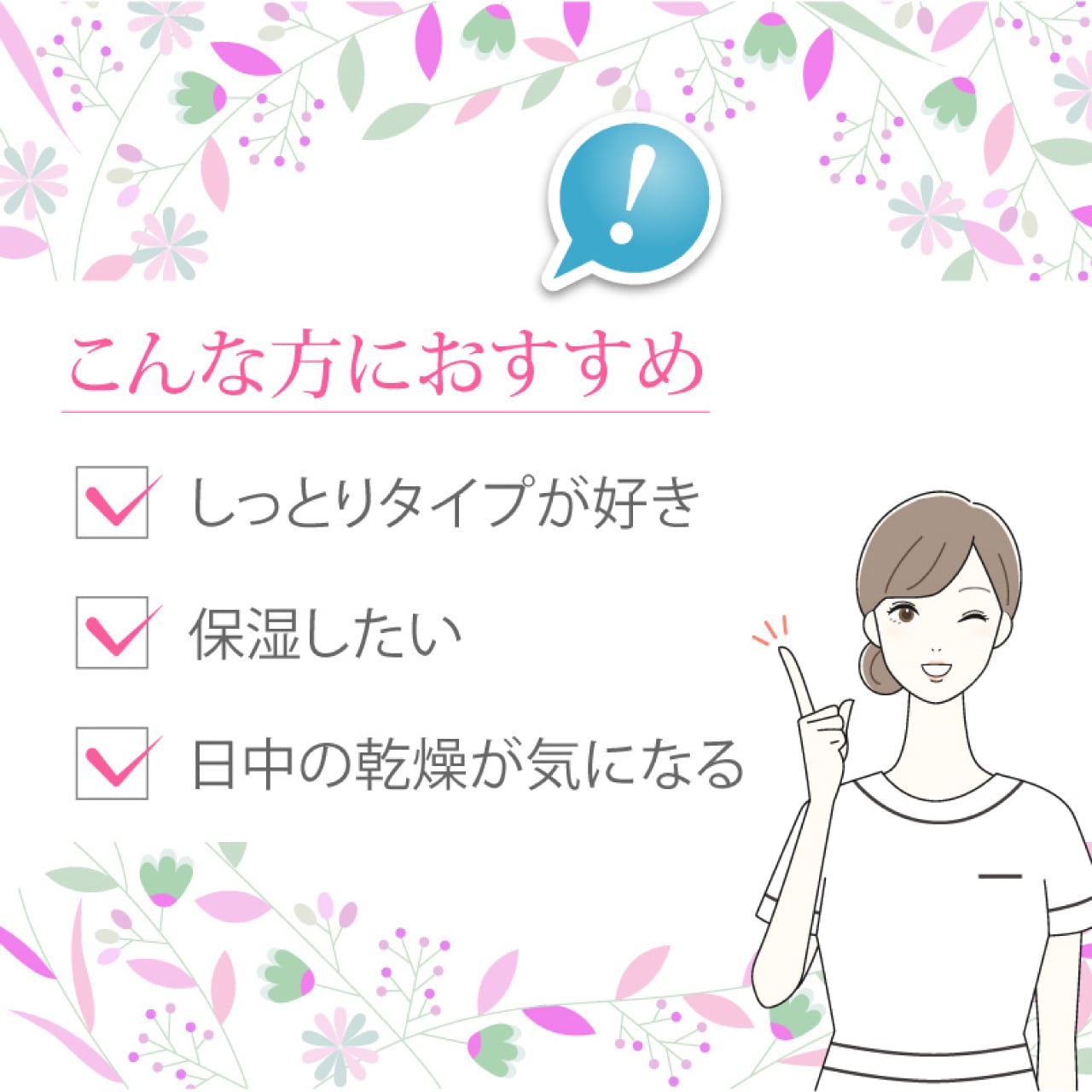 コットンにたっぷりとしみ込ませ、やさしく押さえるようにしてお肌に浸透させてください。