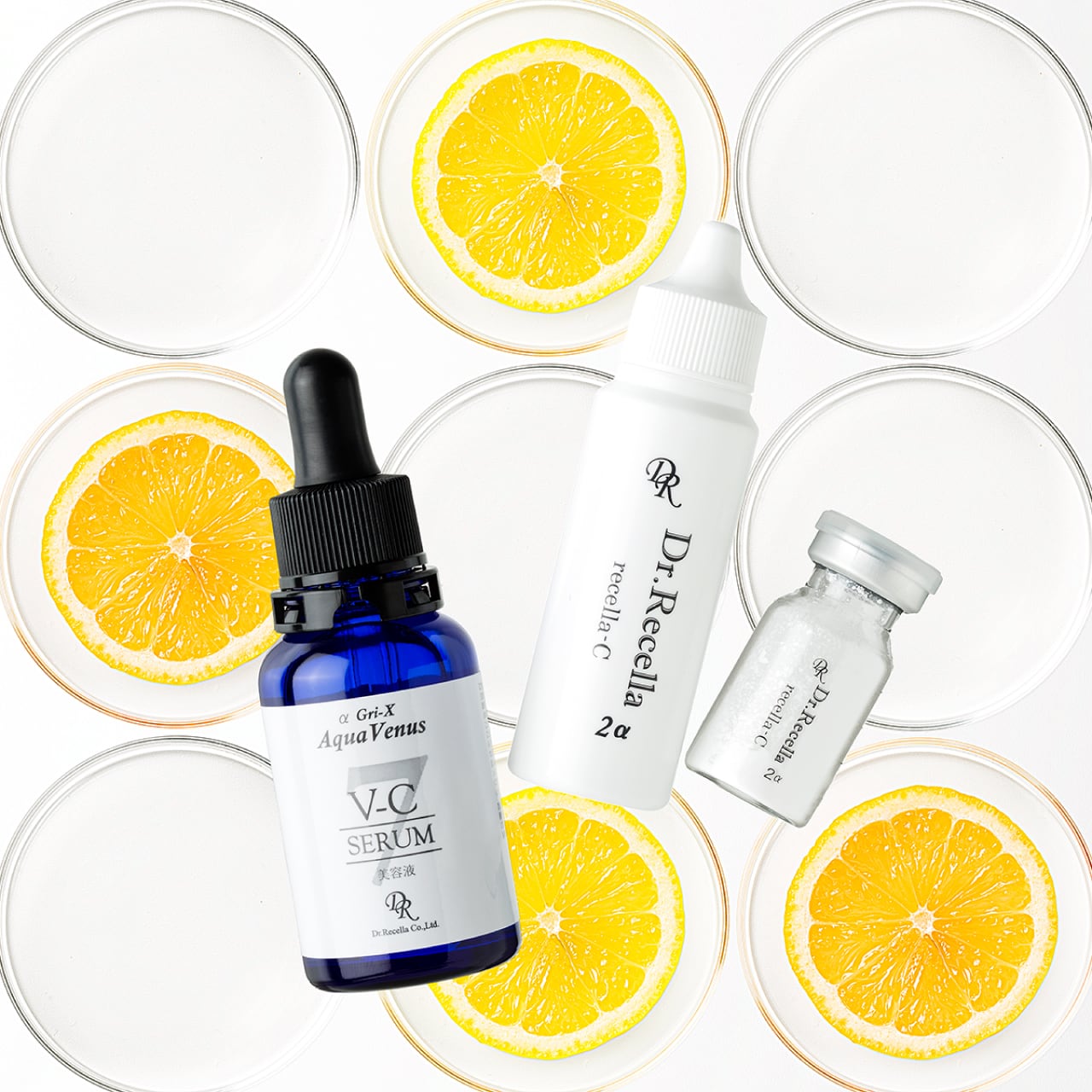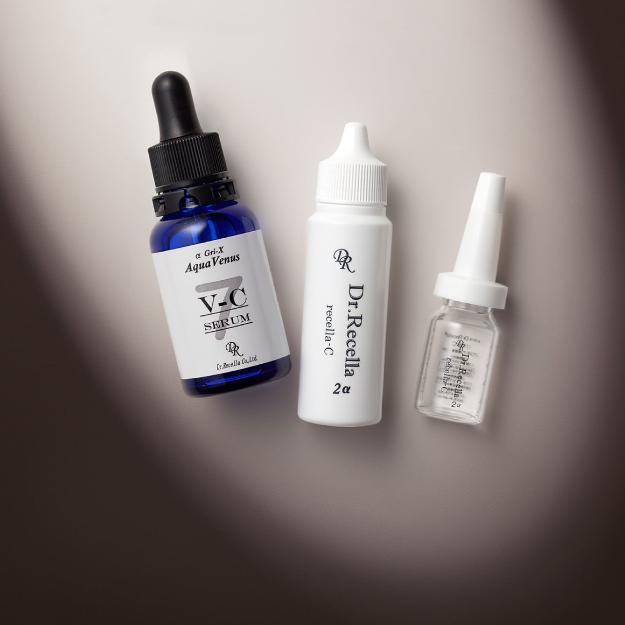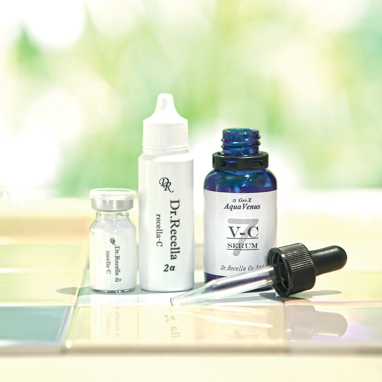 洗顔後にリセラC(5%)、またはV-Cセラムを