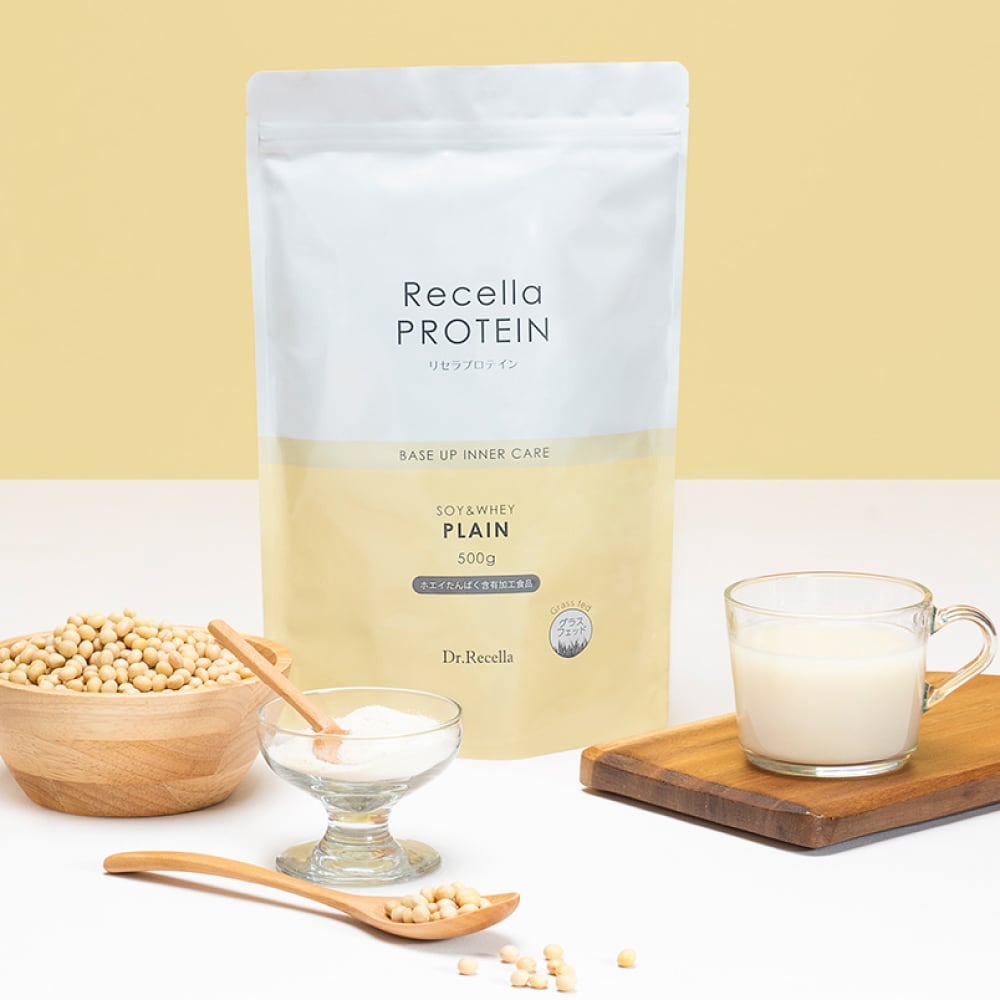ソイプロテインとホエイプロテインをW配合した「リセラプロテイン」に、アサイーやユーグレナなどのスーパーフードを含む成分を新配合。